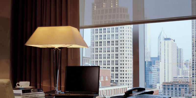 Les stores participent également à l'esthétique du lieu : ils font partie intégrante de l'environnement décoratif de l'hôtel.